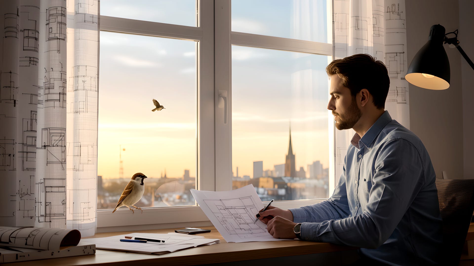 One day, after a sleepless night revising a project, he sat by the window at dawn — mind still full of blueprints.