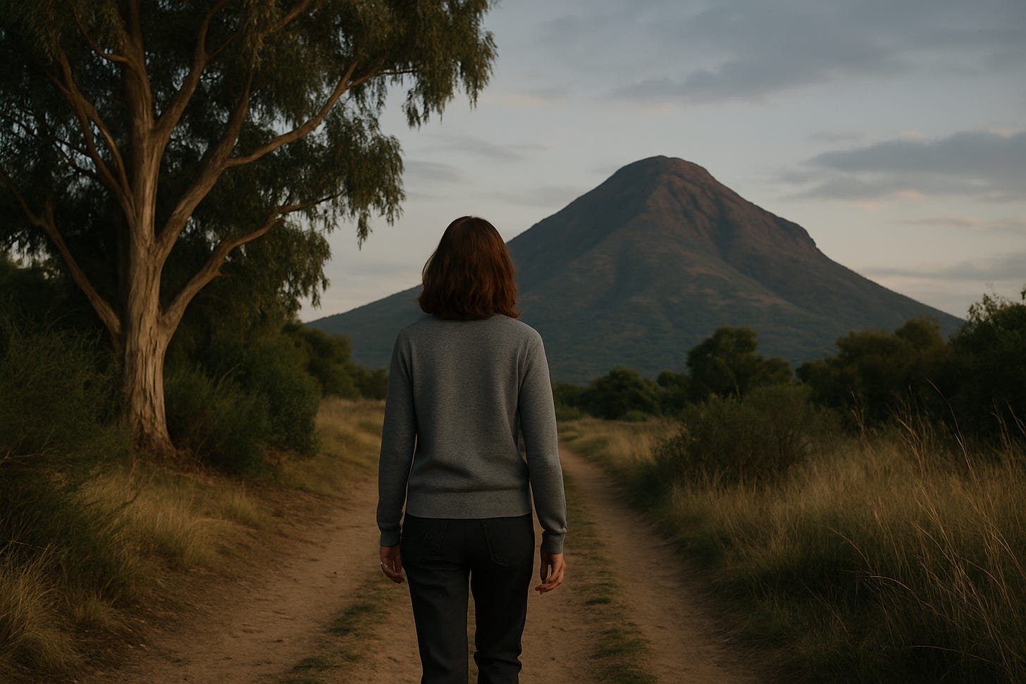 She had gone for a walk the same way she always did — past the big eucalyptus, across the worn footpath, up toward the ridge where the mountain sat in its familiar place, quiet and unmoving.